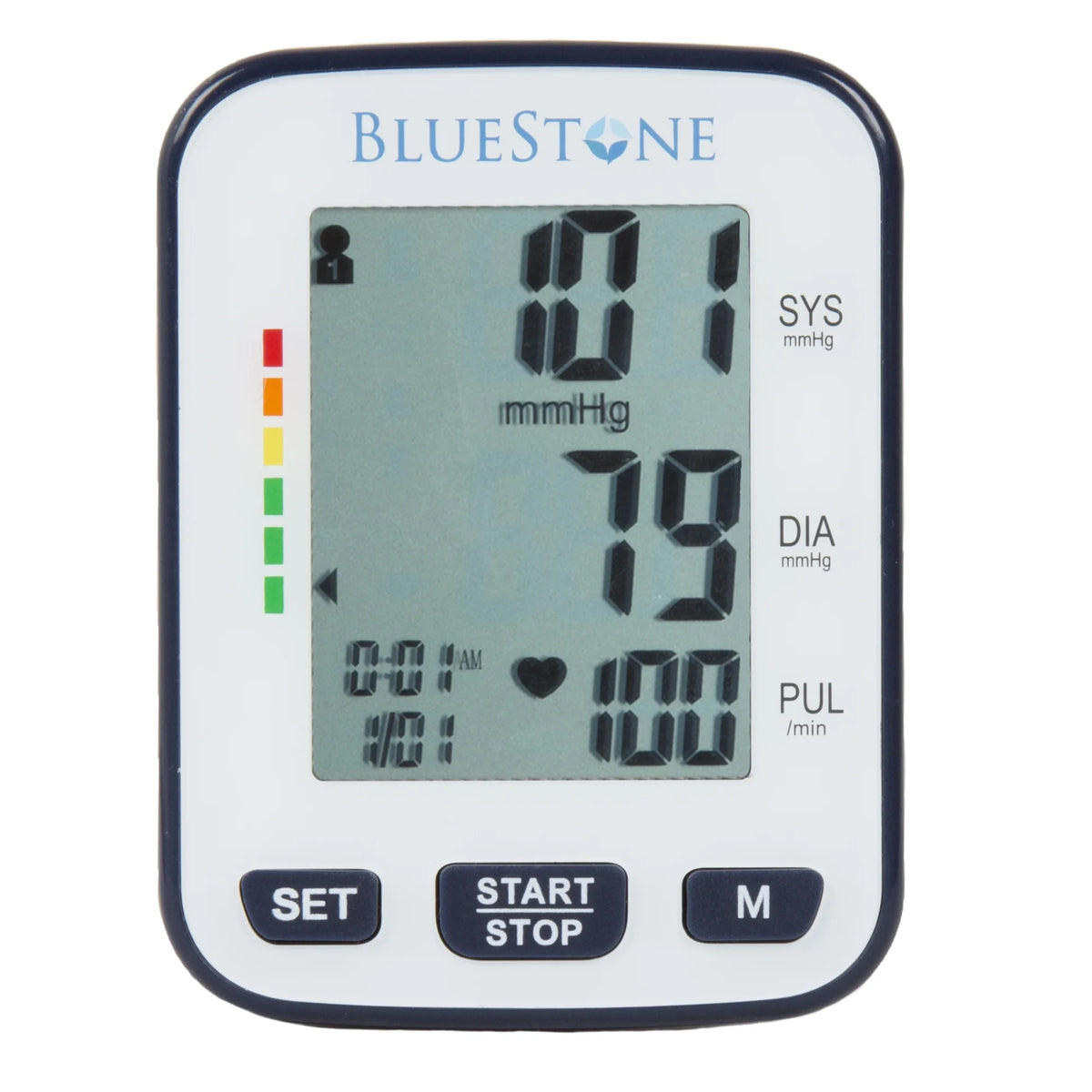 Keep an eye on your vital signs by using this Cuff-Style Blood Pressure Machine with Heart Rate Monitor by Bluestone. Featuring one-touch operation for easy use, this blood pressure cuff enables easy reading with a large LCD display that shows systolic and diastolic blood pressure, pulse readings, and how you rank on the WHO hypertension scale. A tough plastic case makes this BP monitor simple to store and transport.