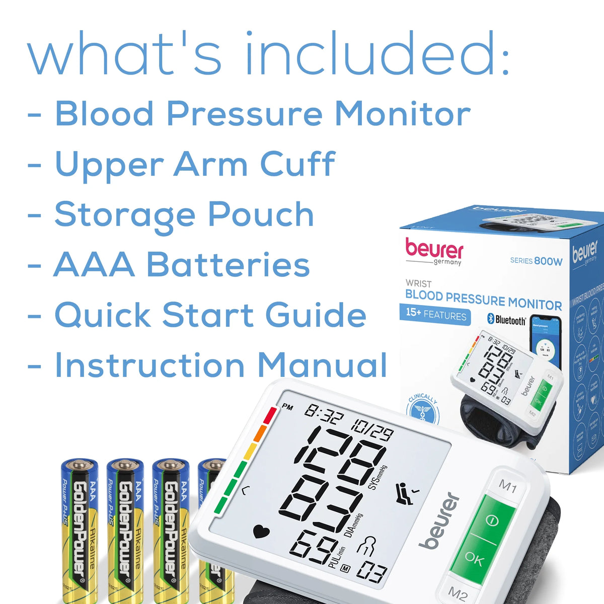 Beurer Series 800W Smart Bluetooth Blood Pressure Wrist Monitor, BC87W