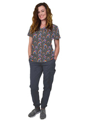 Combine style comfort and fit in the affordably priced GT 4FLEX jogger scrub set. Available in a wide range of fun cute color options to suite your style. Comes with a modern fit matching V-Neck print top and a jogger pant with a full elastic drawstring waist band. The print top is not only extremely fashionable but it is also extremely comfortable. Experience maximum comfort in this lightweight silky soft material. Providing a stretchy breathable fabric designed for freedom of movement while staying active. The ultimate uniform for all women healthcare professionals the super-soft construction of this scrub set will make it your new go-to!