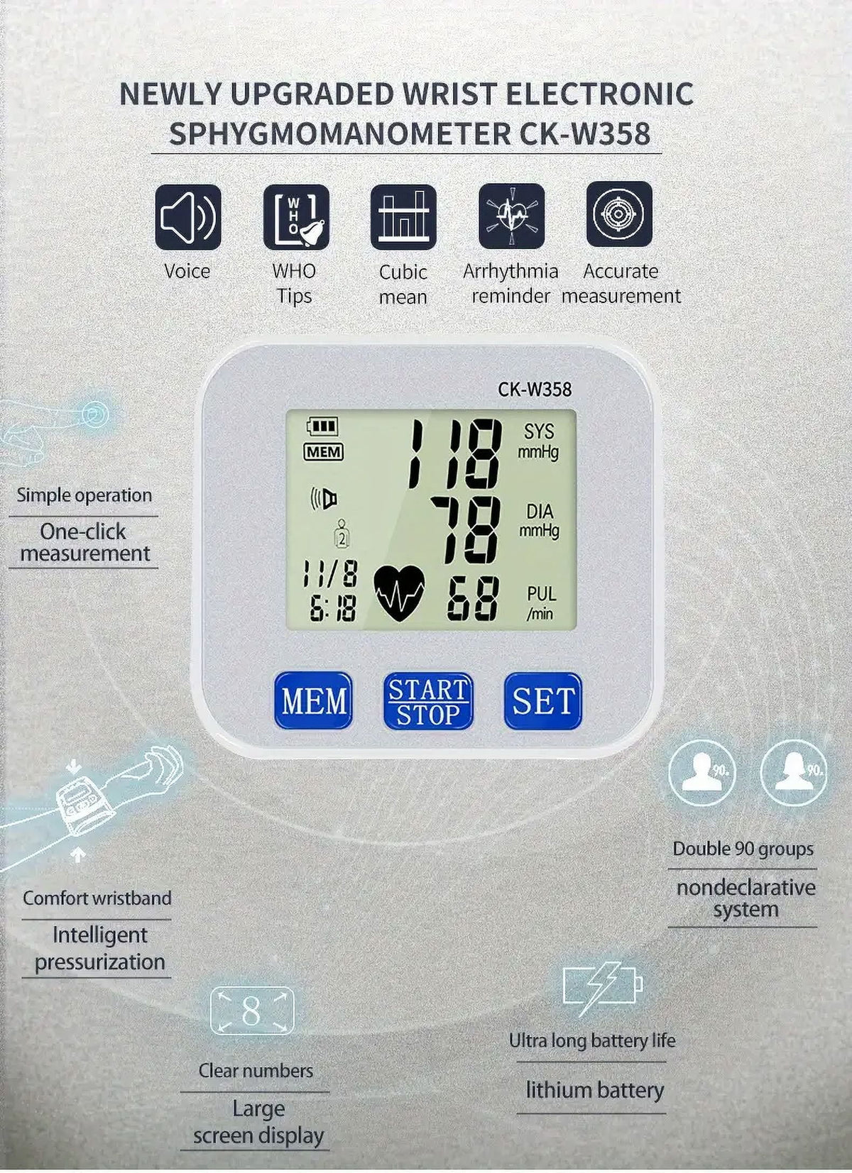 - Accurate Readings: Get precise blood pressure readings with this automatic wrist blood pressure monitor.
